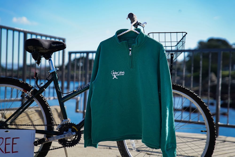 ALLURE Á LA MODE Quarter-Zip white embroidered logo placed on the right upper chest chrome zipper subtle distress at the waistline soft fleece